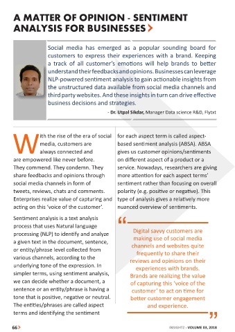 media, customers are based sentiment analysis (ABSA). ABSA